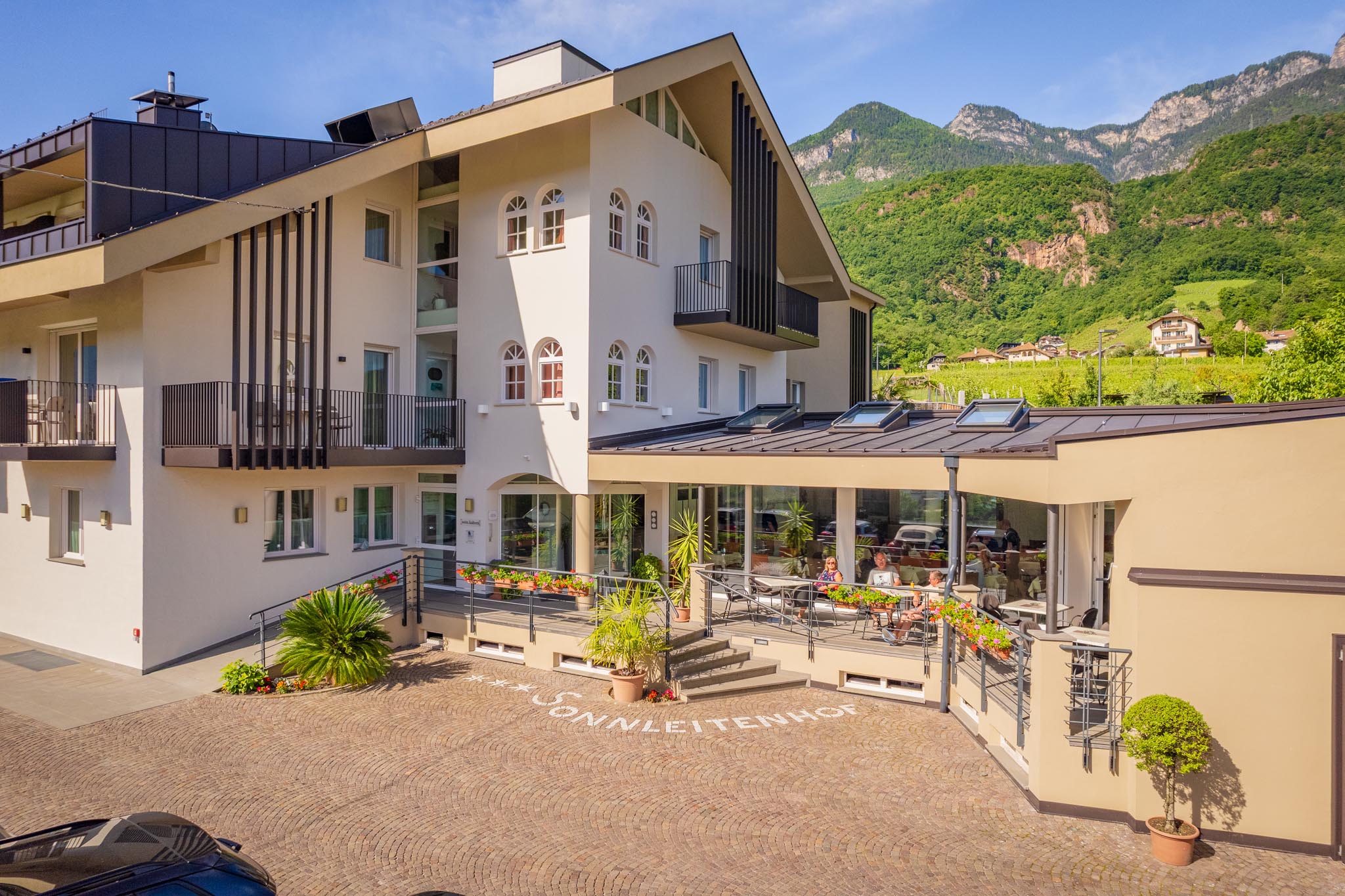 Willkommen im Garni Hotel Sonnleitenhof, umgeben von malerischen Weinbergen. Starten Sie Ihren Tag mit einem reichhaltigen Frühstück im gemütlichen Frühstücksraum oder Wintergarten und genießen Sie den Blick von unseren sonnigen Balkonen auf den Kalterer See.